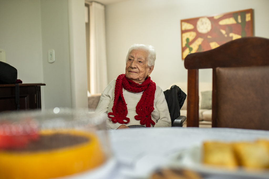 Apesar da idade avançada e do uso da cadeira de rodas, Carmelina mantém a lucidez e a memória afiadas. Recorda das dificuldades de criar os seis filhos, do choque que foi a pandemia da Covid-19, e até de vizinhos de décadas passadas.