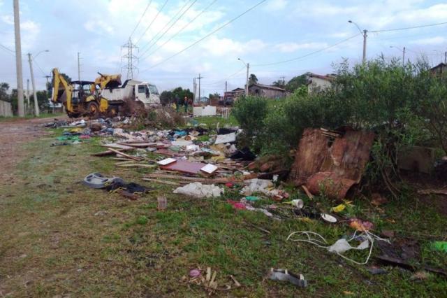 Uma força-tarefa, realizada ontem, na Vila Maringá, resultou na retirada de cerca de 30 toneladas de lixo. Os resíduos recolhidos por uma máquina retroescavadeira foram colocados em um caminhão, para depois receberem a destinação correta. A ação, realizada pela Secretaria de Meio Ambiente, com apoio da Sustentare – empresa responsável pela coleta de lixo domiciliar em Santa Maria – percorreu o trecho ao longo da Avenida Perimetral.