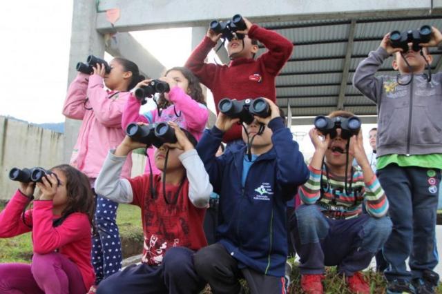 No pátio da escola, cerca de 10 alunos do 1º ano portavam binóculos – orientados por bolsistas da Unidade de Apoio Pedagógico do Centro de Ciências Rurais (UAP/CCR) da Universidade Federal de Santa Maria (UFSM) – e apreciavam os pássaros que voavam nas redondezas da instituição. O projeto Olha o Passarinho é coordenado pelo professor Everton Behr, do CCR da UFSM. Eufóricos com cada voo, e aprendendo sobre o respeito à fauna, os pequenos tiveram uma manhã de diversão e aprendizado.