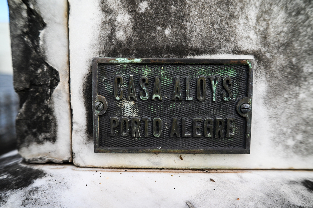 Placa em bronze com a identificação da marmoraria que construiu a maioria dos túmulos mais antigos foto: Vinicius Becker (Diário)