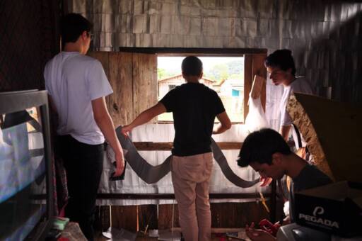 Um dos projetos aplica caixinhas de leite nas frestas das casas de madeira