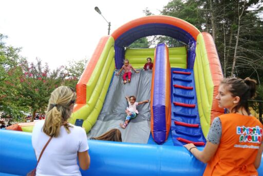 A criançada se divertiu escorregando nos brinquedos infláveis do Parque do Elefante
