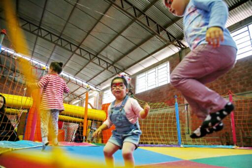 Os brinquedos infláveis - alocados no ginásio fechado em um dos espaços do hotel - foram a atração da criançada. Com o rosto pintado e pulando feliz, Manuella Bevilacqua dos Santos, de 3 anos e meio, se divertiu muito.
