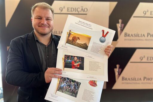 No último sábado (25), foi realizada, em Brasília, a premiação do Concurso Internacional de Fotografia Brasília Photo Show 2023. O festival é considerado um dos maiores eventos de fotografia da América Latina. O jornalista e fotógrafo esportivo de Santa Maria Gabriel Haesbaert, 32 anos, conquistou três premiações. Na categoria fotografia de agronegócio, Haesbaert recebeu a medalha Platinum. Na categoria esportes, ele ganhou duas menções honrosas. Nesta edição, o evento contou com mais 4 mil participantes e 12 mil fotos.