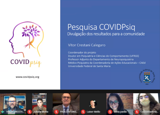 Aproximadamente 6 mil pessoas responderam à pesquisa, que foi realizada em quatro etapas. O projeto é desenvolvido na Coordenadoria de Ações Educacionais (Caed) da UFSM, sob a coordenação do médico psiquiatra e professor do Departamento de Neuropsiquiatria, Vítor Crestani Calegaro. Ainda fazem parte da equipe mais de 70 pessoas, entre médicos psiquiatras, psicólogos, professores, residentes e alunos de graduação e pós-graduação, da Universidade Federal de Santa Maria (UFSM), Hospital Universitário de Santa Maria (Husm), Universidade Federal do Rio Grande do Sul (UFRGS), Universidade Franciscana (UFN) e Universidade Federal de São Paulo (UNIFESP).