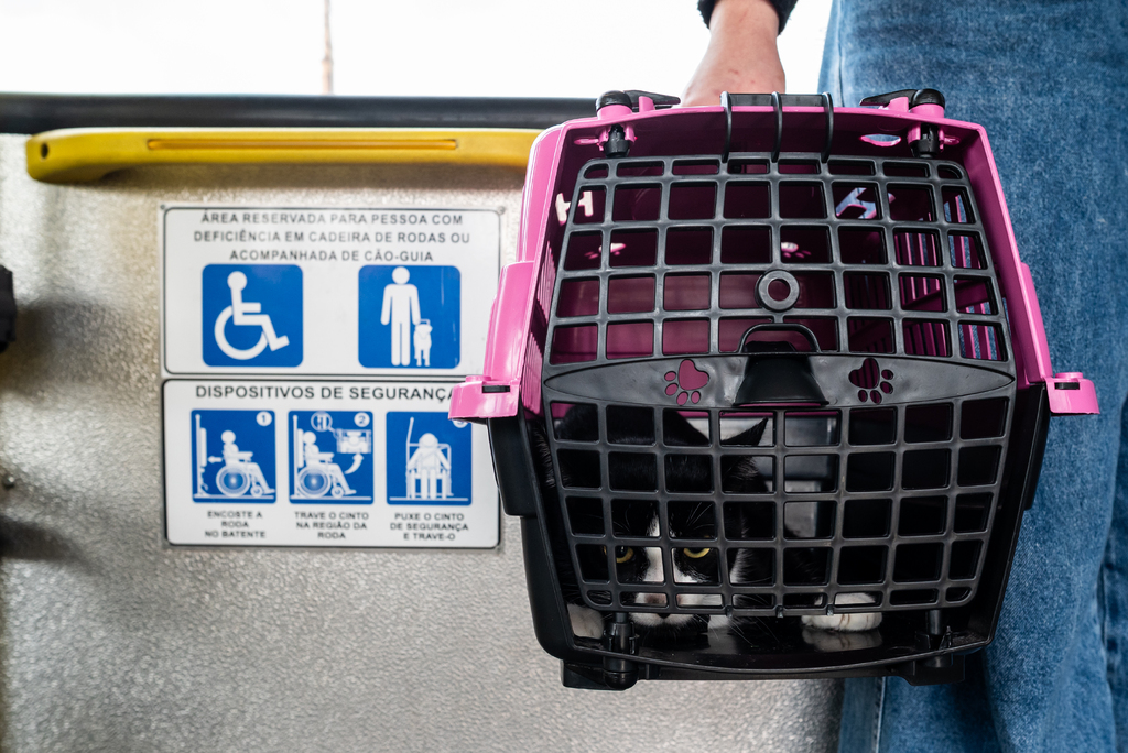 Além do cadastro, o transporte deve seguir outras regras: só são permitidos animais de pequeno porte — cães e gatos com até 10 kg — e eles devem estar acomodados em caixa de transporte rígida, limpa e segura, dentro das dimensões exigidas.