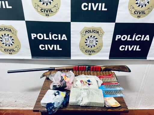 Durante o cumprimento de mandado de busca e apreensão, a polícia localizou e apreendeu na residência do suspeito 10 munições de calibre 357, uma espingarda calibre 12, 20 munições de calibre 38, 16 munições de calibre 12, 43 munições de calibre 22, três tijolos de cocaína pesando 1,785 quilos, 36 comprimidos de ecstasy e R$ 180.