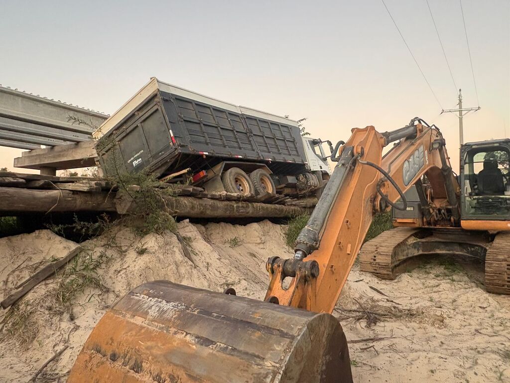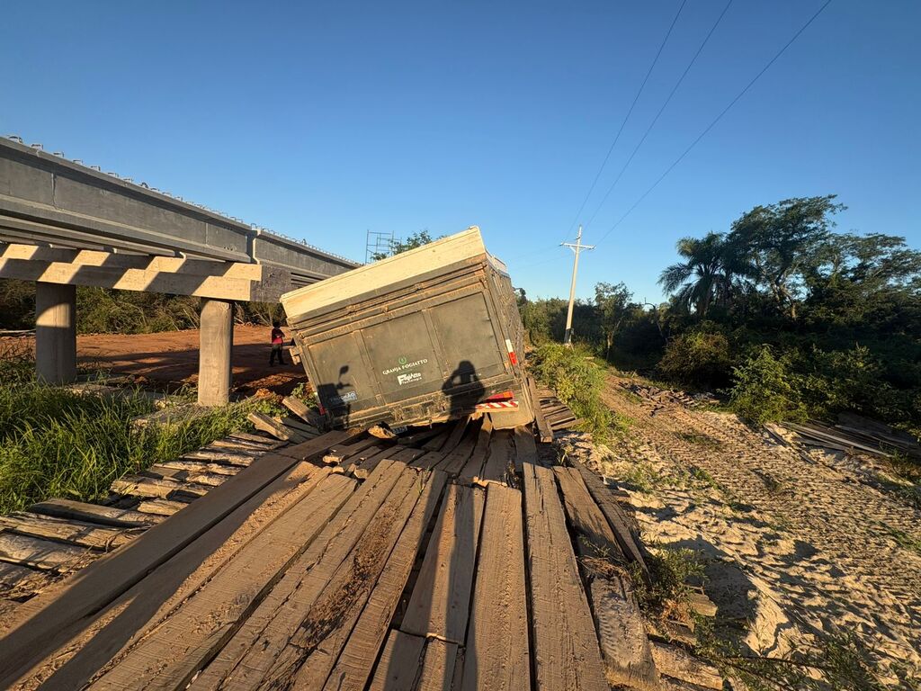 Segundo ele, houve um momento em que o caminhão precisou parar e, ao acionar a embreagem, as pranchas da ponte acabaram cedendo. O veículo não chegou a cair, evitando um acidente de maiores proporções. Apesar do susto, ninguém ficou ferido.