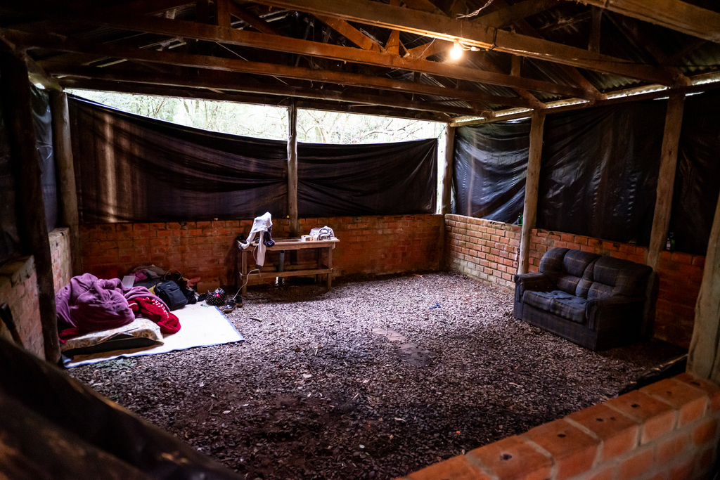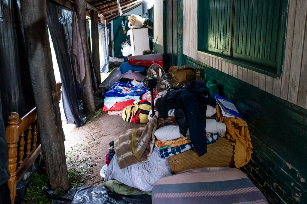 Em um dia marcado por temperaturas na casa dos 20°C e tempo seco, os indígenas aproveitaram o sol ao ar livre. O grupo ocupa a parte externa do prédio e, à noite, conta com três lâmpadas que foram colocadas no local. Não há energia elétrica no restante do espaço. Por ser aberto nas laterais, foi necessário colocar lonas para proteger esses espaços do frio e da chuva dos últimos dias: