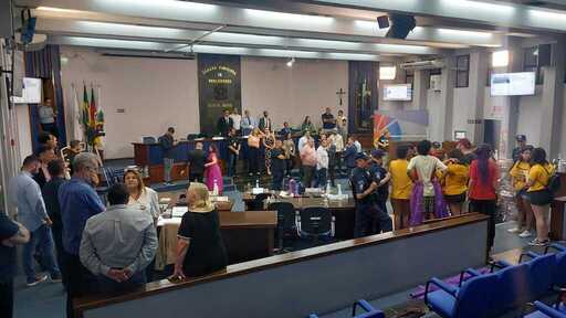 Na ocasião, representantes de movimentos sociais contrários que protestavam contra a votação foram retirados do local pela Brigada Militar e pela Guarda Municipal no momento em que entraram no plenário.