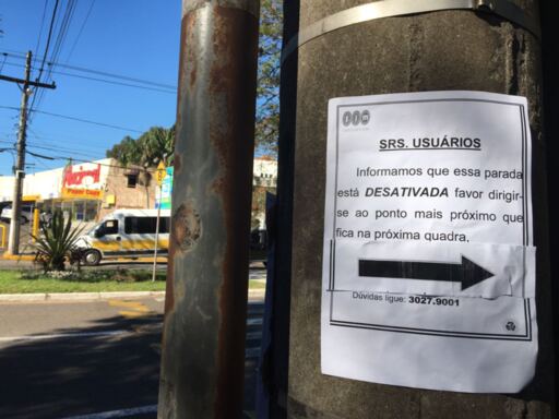 Ainda na terça-feira, equipes da Secretaria de Mobilidade Urbana realizaram serviços de sinalização do novo ponto de ônibus. Foi instalada uma placa, indicando o local da parada, mas, por enquanto, não há previsão para instalação de um novo abrigo.