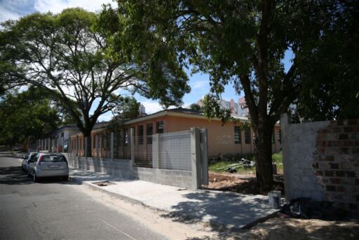 Após reforma, novo muro foi construído e árvore ficou no meio da entrada