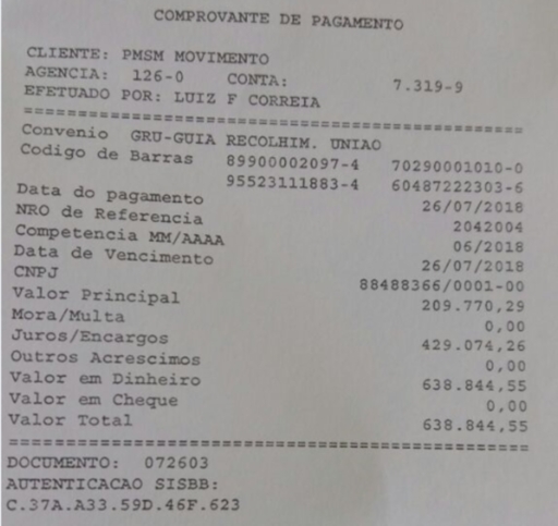 Transferência dos R$ 638 mil foi feita nesta quinta