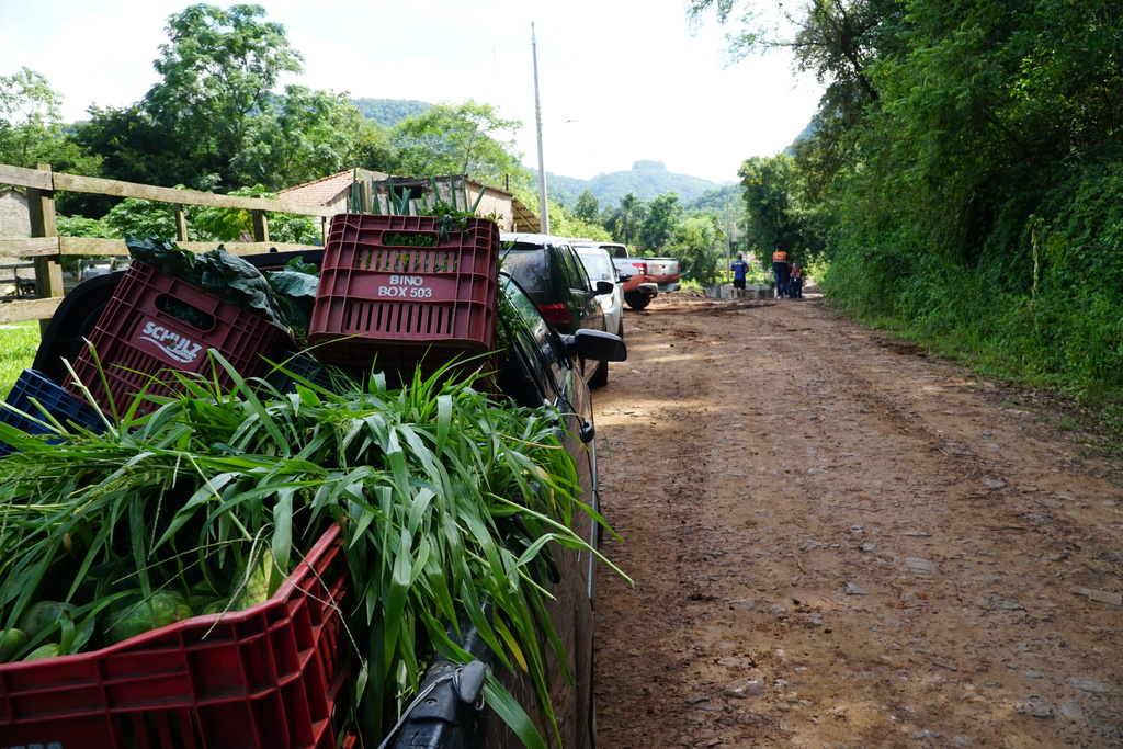 Cinco dias após as chuvas que caíram ainda no Natal, a forte correnteza na passagem molhada impede o tráfego de veículos na região. Para não perder a produção armazenada em câmaras frias, os agricultores levaram os produtos até a margem do arroio, onde realizaram a "baldeação" para um caminhão que leva até ao outro lado, viabilizando o transporte até a feira que fica na Praça do Caridade.