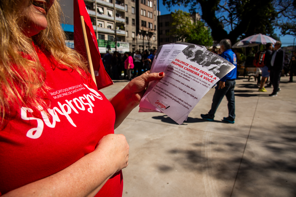 A manhã desta segunda-feira (29) foi de salas de aula vazias e mobilização em Santa Maria. Em protesto contra a proposta de reforma da Previdência apresentada pela prefeitura, professores da rede municipal paralisaram as atividades em mais de 50 escolas, segundo o Sindicato dos Professores Municipais de Santa Maria (Sinprosm). A cidade conta com 86 escolas e cerca de 22 mil alunos matriculados na rede de ensino.