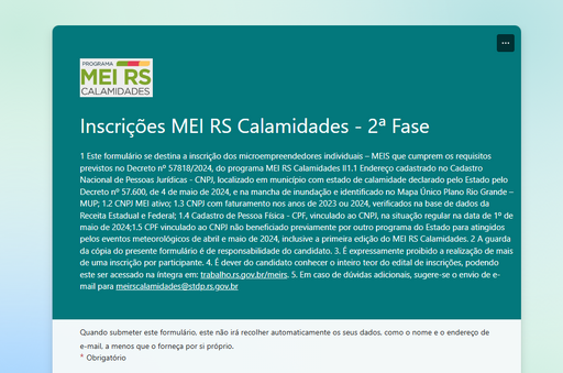 O programa MEI RS Calamidades teve suas inscrições prorrogadas até 31 de agosto. A decisão foi publicada no Diário Oficial do Estado nesta segunda-feira (30).