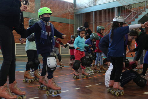 Segundo o professor Luciano Coutinho, o objetivo é aproximar a gurizada da patinação artística.