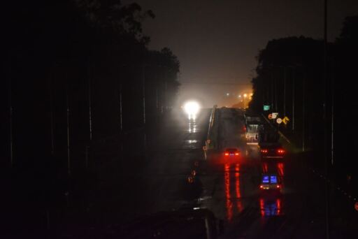 À noite, a reportagem percorreu os trechos em obras e constatou, ao menos, quatro trechos em que são duas as possibilidades de se ter um feixe de luz: a dos próprios veículos ou a da lua (o que fica prejudicado em noites de chuva). Esses quatro pontos são: