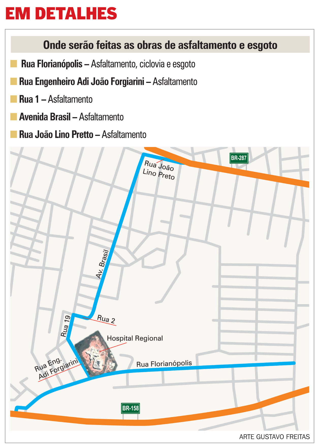 A pavimentação é parte do projeto de infraestrutura previsto para o entorno do hospital, e tem recursos do Programa de Aceleração do Crescimento (PAC) 2. Na sexta-feira, prefeitura e Corsan estiveram no local para uma vistoria. O contrato do PAC deve ser assinado no dia 14 de fevereiro. Outras ruas no entorno do hospital também serão asfaltadas.