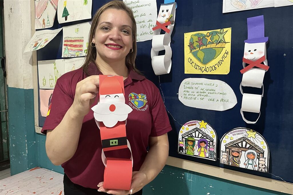 Em um mural no Centro de Desenvolvimento Comunitário (CDC) Estação dos Ventos, no Bairro Km3, a educadora especial Emilene Rodrigues Wagner, 38 anos, prende com alfinetes alguns desenhos de Natal feitos pelas crianças contempladas pela iniciativa. Para ela, a data é mais do que especial: