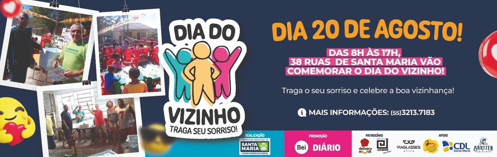 Além de resgatar a festa que comemora a convivência e os vínculos das vizinhanças em ruas e bairros de Santa Maria, o Dia do Vizinho também premiará as ruas que se destacaram em três categorias: melhor engajamento, melhor programação e melhor decoração. A entrega dos troféus acontecerá na terça-feira, às 18h, na sede do Grupo Diário, com transmissão ao vivo durante o programa Jornal do Diário.