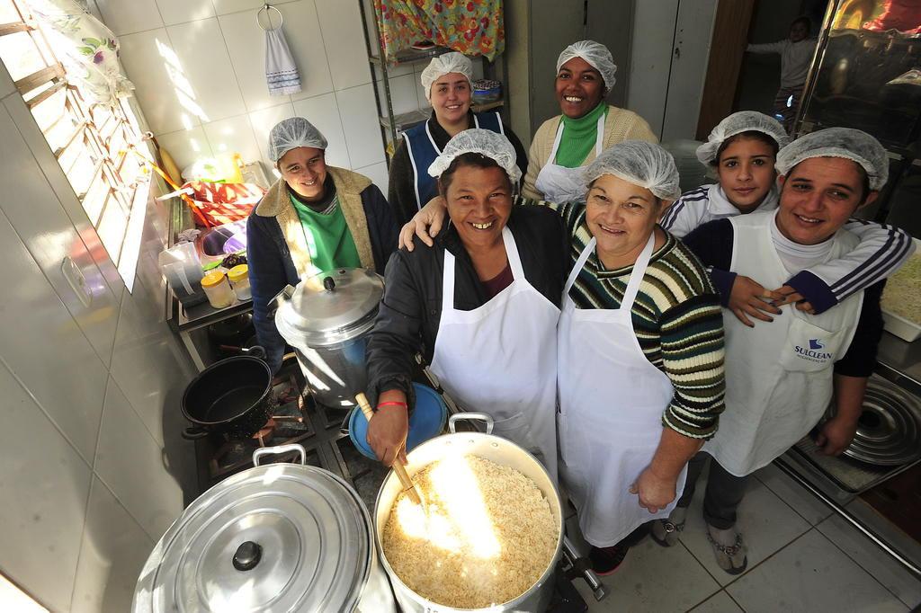 Para muitas famílias pobres, cozinhas comunitárias são a solução. Em Santa Maria, são oito. Na Vila Lorenzi, a cozinha funciona desde 2012 e 32 famílias são cadastradas. Oito voluntárias trabalham no preparo das refeições. A cozinha oferece cerca de 250 almoços semanais, às terças e quartas-feiras.