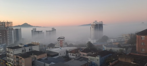 A manhã desta segunda-feira (21) iniciou com forte nevoeiro em Santa Maria. A densa cerração, segundo o meteorologista Gustavo Verardo, é produto da calmaria dos ventos, da alta umidade e da queda da temperatura no período da madrugada.