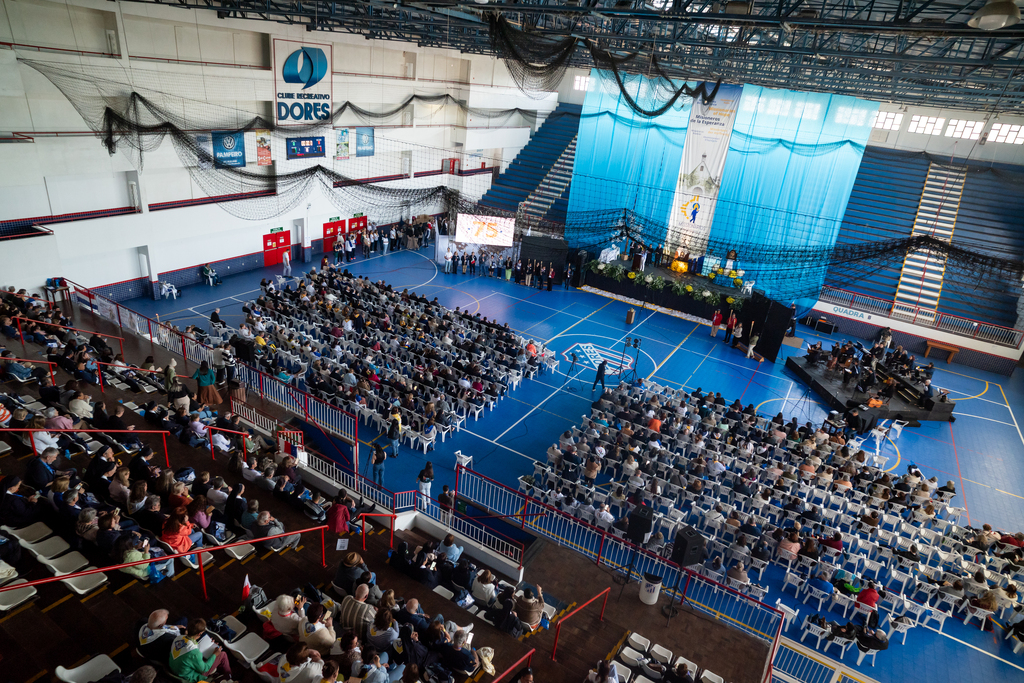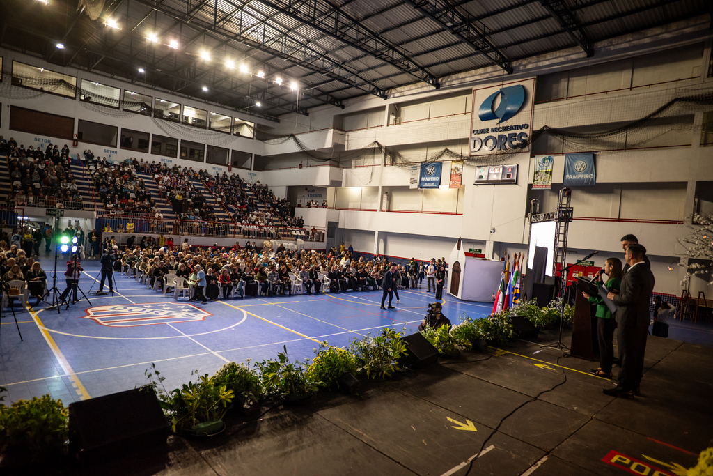 Por volta das 19h30min, quase todos já haviam jantado e se dirigiram ao ginásio do Clube Dores. Aos poucos, o espaço encheu.