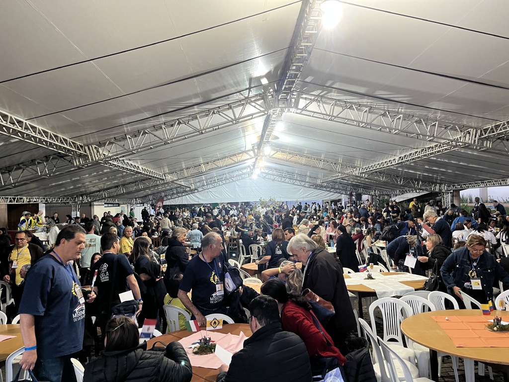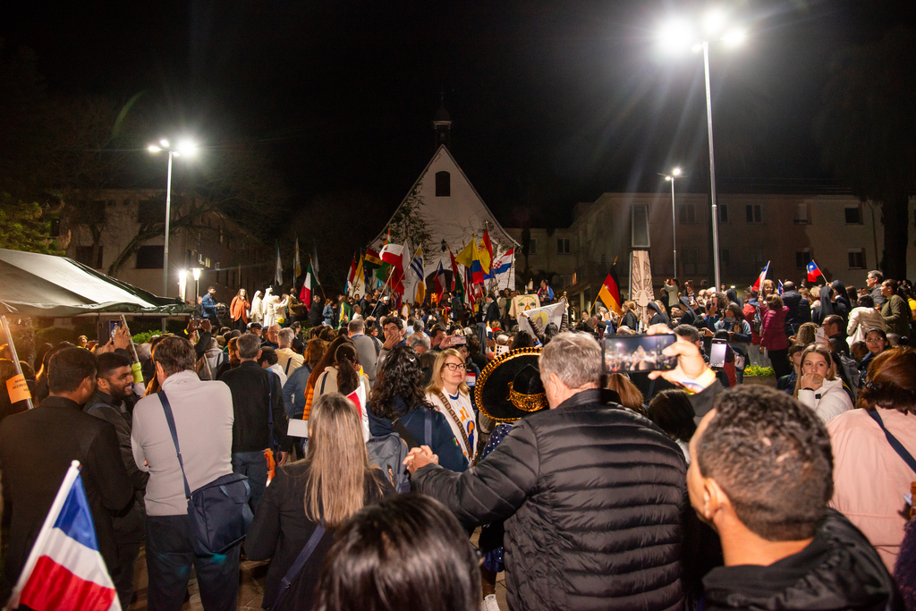 Entre os peregrinos que viajaram longas distâncias para participar do encontro internacional estava o diácono Fernando Ignacio Gonzalez Baquerizo, do Equador. Ele conheceu João Luiz Pozzobon por meio de livros e do contato com missionários da sua região, e fez questão de vir acompanhar de perto o legado do diácono em Santa Maria. A viagem, que começou na noite do dia 7 de setembro e passou por Lima antes de chegar ao Brasil, exigiu muitas horas de deslocamento. Mas, segundo ele, nem o cansaço diminuiu a alegria de estar ali: