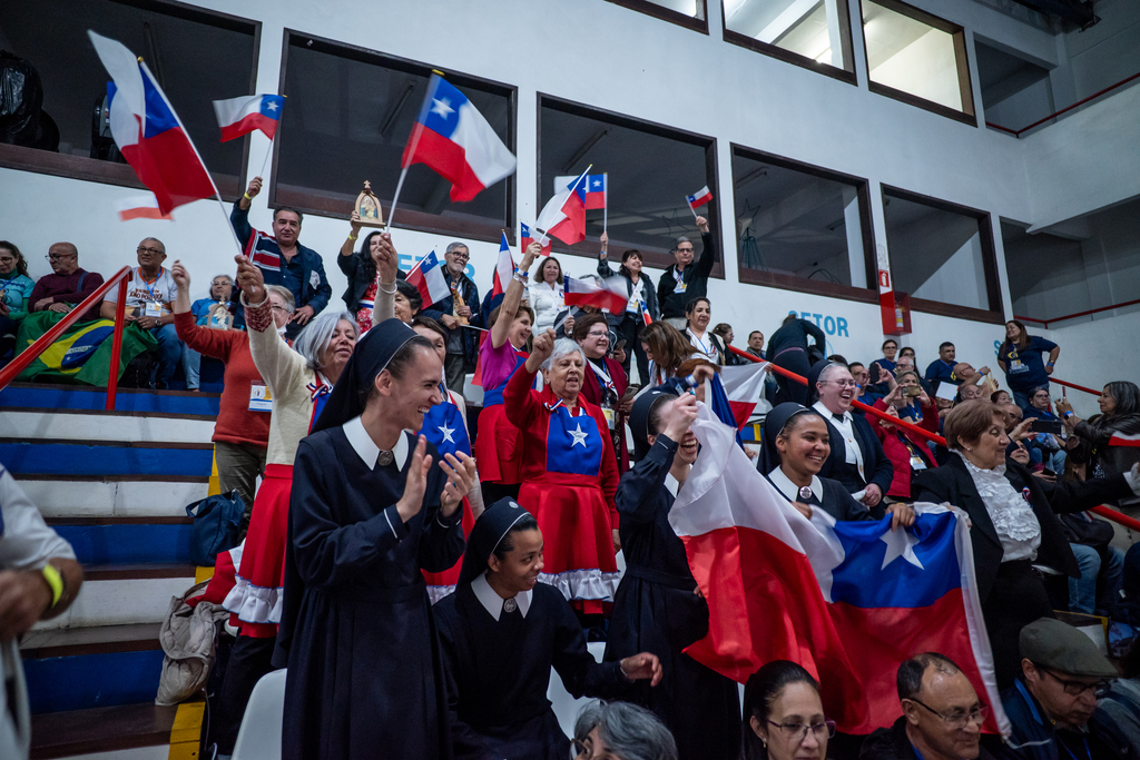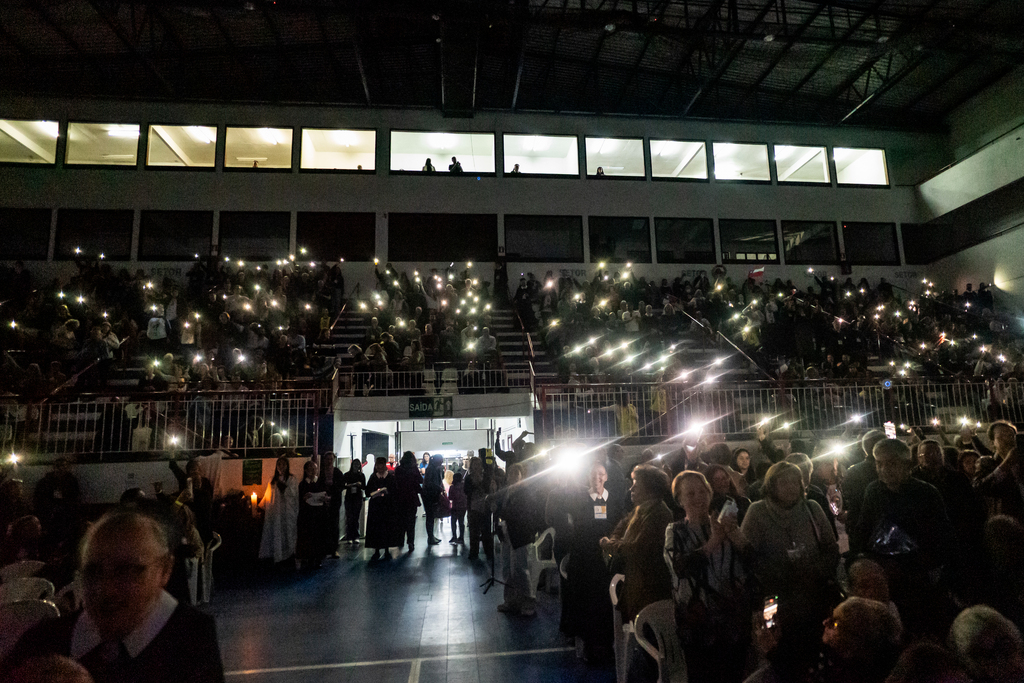 Ginásio lotado, bandeiras, mães peregrinas e emoção