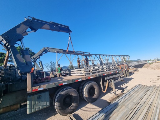 Na última semana, a concessionária Rota de Santa Maria concluiu os dois desvios laterais, feitos com uma base de pedras e camada de asfalto para receber a estrutura. A montagem se iniciou neste sábado e está sendo realizada pelo 5° Batalhão de Engenharia de Combate Blindado, com sede em Porto União - SC. Conforme o comandante Diego Agostini, a estrutura metálica terá 60 metros de extensão.