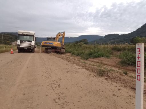 As máquinas já estão na pista na VRS-823 para asfaltar mais um trecho de 2 km do acesso ao distrito turístico de Vale Vêneto. Na semana passada, a Construtora Continental começou os serviços, que vão ser um pouco prejudicados pelas chuvas desta semana.