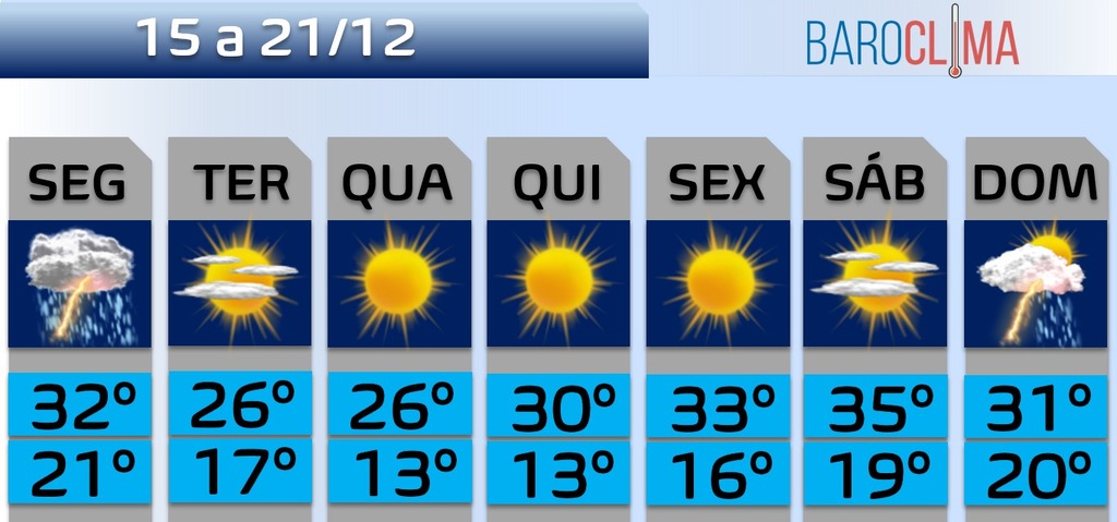 Para a terça-feira (16), ainda há possibilidade de chuva durante a madrugada, mas a tendência é de melhora gradual das condições do tempo ao longo do dia. Conforme a BaroClima, o tempo firme deve voltar a predominar após esse período inicial de instabilidade, encerrando o episódio de temporais no começo da semana.