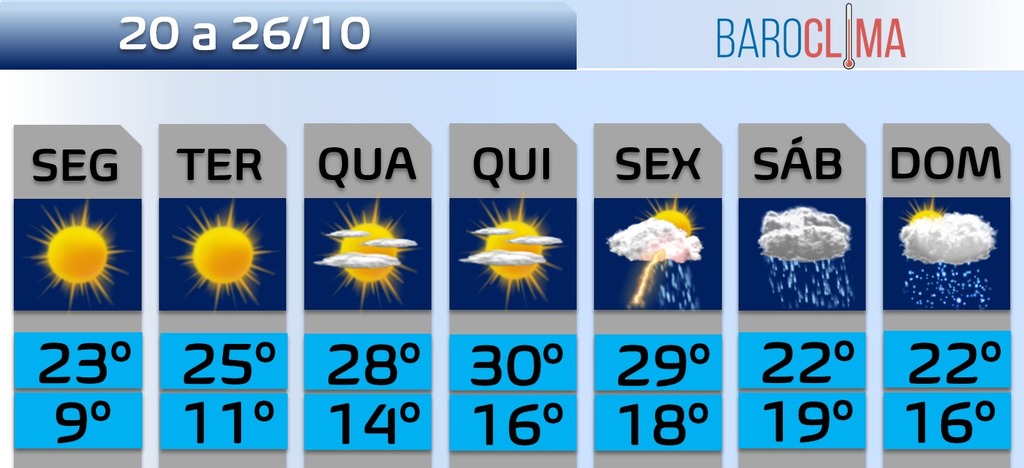 De acordo com a BaroClima Meteorologia, um sistema de alta pressão atmosférica e uma massa de ar seco determinam as condições do tempo no Rio Grande do Sul, garantindo a presença de muito sol em grande parte da semana.