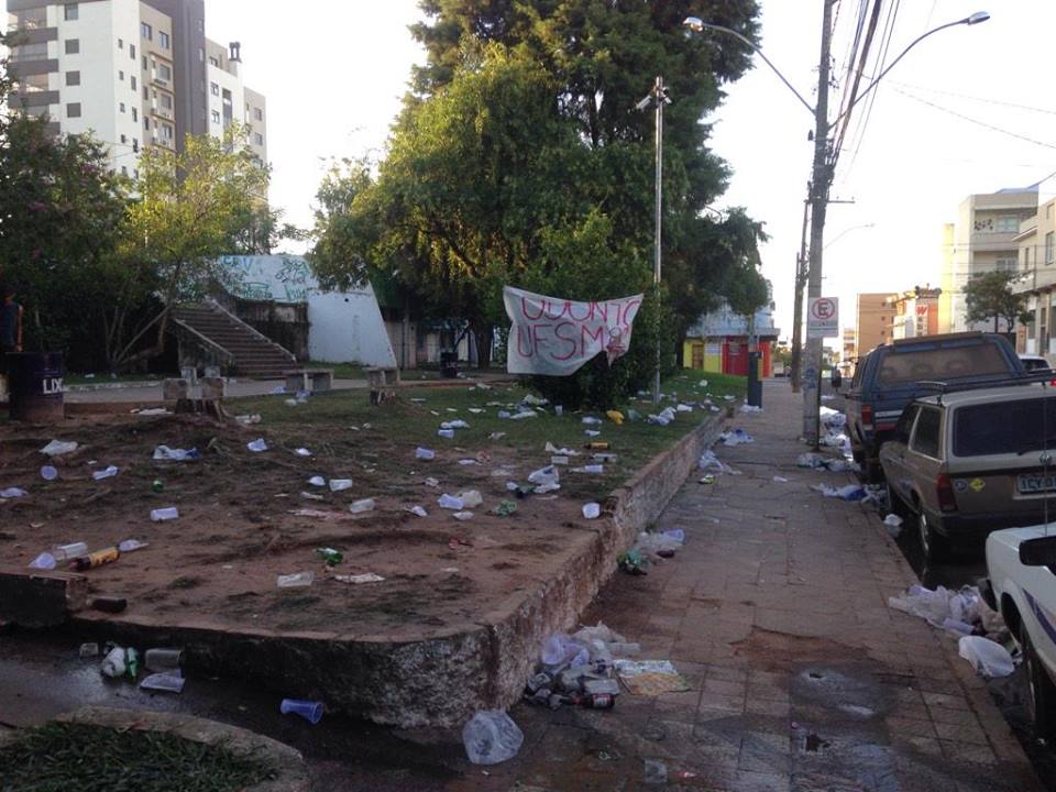 Já no centro da cidade, a Praça Saturnino de Brito, conhecido ponto de encontro de jovens, amanheceu tomada pelo lixo. Na noite de segunda-feira, centenas de estudantes se reuniram no local para confraternizar o retorno das aulas, e também para dar as boas-vindas aos bixos. Depois dos trotes, o que vi pelo chão da praça, eram copos plásticos, garrafas, entre outros objetos.