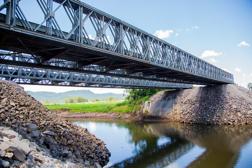 Na RSC-287, duas estruturas metálicas e provisórias ainda conectam o coração do Rio Grande do Sul à Capital do estado. A ponte definitiva sobre o Arroio Grande, no km 226, que desabou no dia 30 de abril de 2024, tem conclusão prevista para junho deste ano. A Concessionária Rota de Santa Maria, responsável pelo trecho, trabalha na finalização do projeto junto ao governo do Estado. Até lá, o tráfego seguirá limitado em até 80 toneladas nas duas pontes móveis metálicas instaladas pelo Exército.