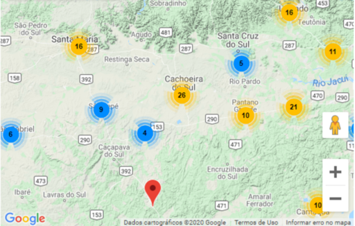 Ao fazer a busca, a ferramenta traz em um mapa com a localização exata do estabelecimento, tipo de serviço prestado, dias e horário de funcionamento de cada estabelecimento comercial.