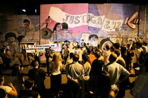 Em 27 de janeiro, centenas de pessoas se reuniram em frente ao prédio da boate Kiss para prestar homenagem às vítimas nos 6 anos da tragédia