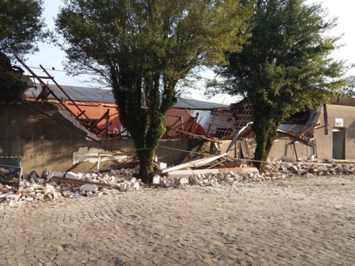 Parte do telhado do Clube Seco, em Restinga Sêca, onde funcionava o Pub Club, desabou na madrugada deste sábado.