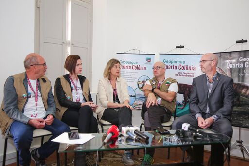 A missão de avaliação do Geoparque Quarta Colônia, que pode colocar a Região Central na rede internacional de geoparques, começou às 7h15min desta segunda-feira (24). A primeira atividade foi uma coletiva de imprensa que contou com a participação dos avaliadores da Organização das Nações Unidas para a Educação, a Ciência e a Cultura (Unesco), Ángel Hernandéz e Helga Chulepin, além do presidente do Condesus Clovis Montagner, do reitor da UFSM Luciano Schuch e da diretora do projeto Jaciele Sell.