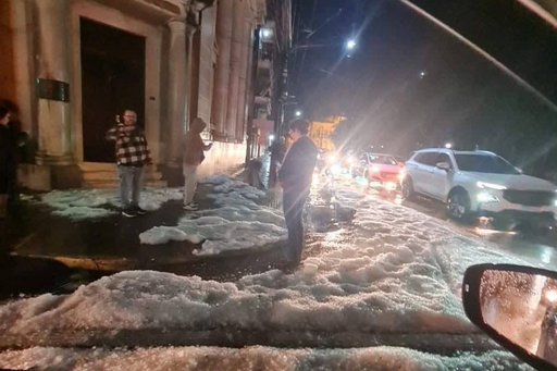 Em outros pontos do Rio Grande do Sul, como na cidade de Sant'Ana do Livramento, na Fronteira com o Uruguai, a chuva chegou acompanhada por granizo, ainda pela tarde. Confira registros publicados nas redes sociais do evento climático na cidade: