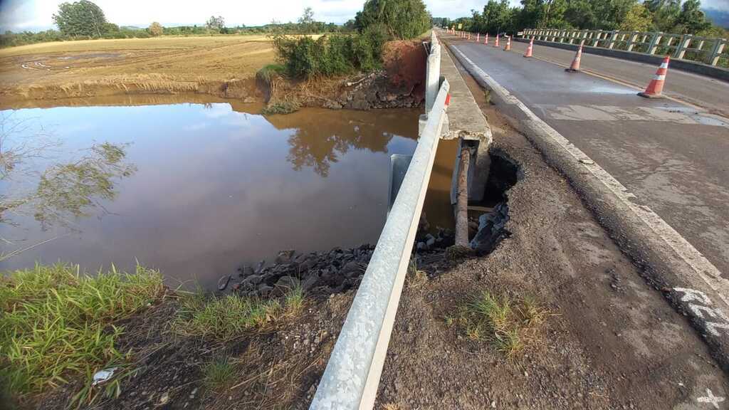 Este é o 9º trecho liberado na rodovia. Ainda faltam seis. A imagem abaixo mostra a situação da ponte no dia 20 de maio. O local estava interditado desde o início do mês.