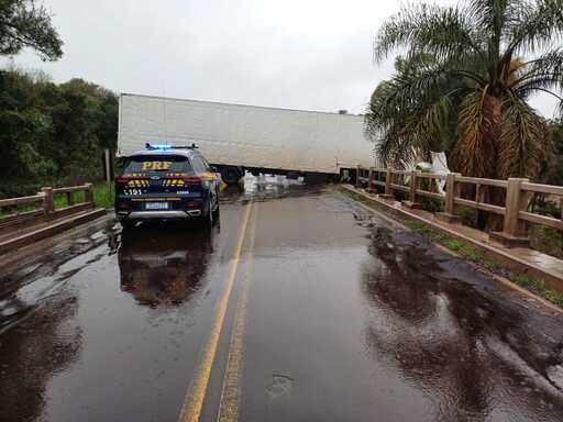 O veículo ficou em formato de "L" na pista no km 249 da rodovia, na localidade de Passo dos Buracos.