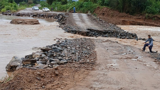 Trânsito no desvio próximo ao Arroio Guarda-Mor está bloqueado; estrutura foi danificada pelas chuvas