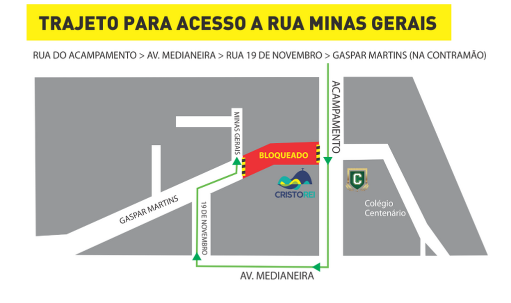 Veja, abaixo, o trajeto indicado para acesso a Rua Minas Gerais: