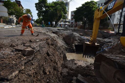 A equipe chegou por volta das 9h no local para fazer o trabalho de recuperação de toda a extensão da galeria de rede pluvial que cedeu com a chuvarada do mês de dezembro. Hoje, foram feitas as marcações da obra para, então, na sexta-feira, o maquinário poder realizar os demais serviços. Conforme a Secretaria de Infraestrutura, a cada dia deve chegar uma carga com as galerias, ao todo são 50 blocos quadrados de concreto.