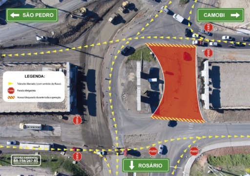 Atenção, motoristas! O trânsito terá alterações nesta segunda-feira por conta das obras da travessia urbana de Santa Maria. A partir das 12h desta segunda-feira, o trevo da BR-158 (Faixa de Rosário), no entroncamento da BR-287, conhecido como Trevo das Piscinas, será totalmente bloqueado no sentido Bairro-Centro.