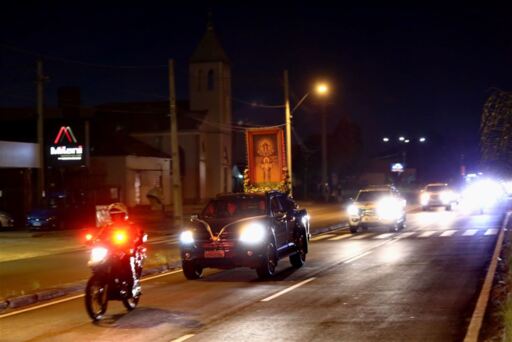 Decorados com fitas azul e branca, que representa as cores do manto de Medianeira, os veículos que participaram da carreata saíram da Catedral Metropolitana em direção ao Bairro Camobi. Na Igreja de Nossa Senhora da Glória, foi rezada missa, às 20h.