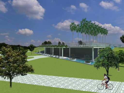 A edificação conta com um terraço-jardim que funcionará como mirante para os morros da cidade, áreas verdes do campus e o Centro de Convenções. O prédio, todo idealizado em vidro para estimular o contato com a natureza, ainda dará acesso a um monumento em formato de coração em meio a outro espelho d'água. No entorno, o projeto prevê a plantação de 242 espécies de árvores que florescerão em tempos distintos durante todas as estações do ano, e uma espécie de arquibancada ao ar livre com platôs para descanso e contemplação. A comissão e os gestores da UFSM avaliam as necessidades técnicas e de investimento para a construção do espaço dentro do campus da UFSM nos próximos anos.