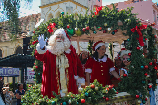 A última Parada de Natal do ano reuniu santa-marienses que passavam pela Avenida Rio Branco e pela Rua do Acampamento. O calor não estava tão intenso quanto nos dois desfiles anteriores, mas mesmo assim quem estava com as fantasias de papais noéis, duendes e palhaços enfrentou o sol da manhã deste sábado (17), às 10h, com um sorriso no rosto e levou muita alegria e balinhas para o público. O desfile faz parte da programação do Viva o Natal, realizado pela prefeitura de Santa Maria.